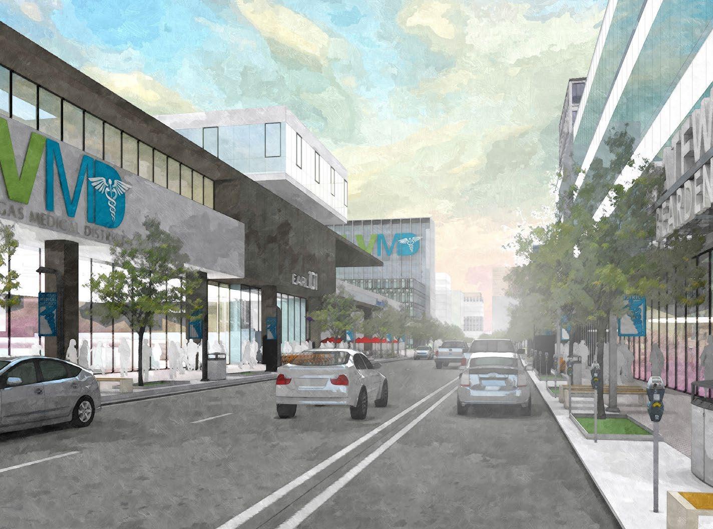 While deliberately flexible to accommodate future changes and opportunities, the development framework plan for the LVMD creates an iconic setting for a world class medical center, new medical school, a range of walkable food service and amenity retail opportunities, and balanced opportunities for increased density.