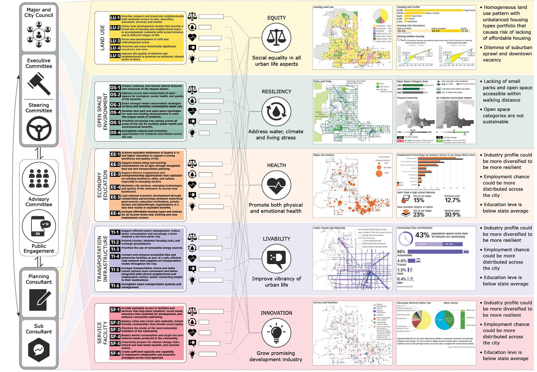 2050 Master Plan identifies current issues and needs in the community, and sets forth goals, policies and actions to address them. The project team worked closely with stakeholders and public to promote five aspects of city future development aligned with five guiding principles. A data-driven geodesign framework was exerted to build procedural models that facilitate process from decision-making to implementation. The complex and specific issues regarding existing conditions and future scenarios across sixteen planning areas were analyzed and proposed by not only spacial and experiential ways but also quantified and analytical methods. Its Storymap portal can be found: https://arcg.is/1SGW4G