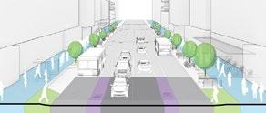 • Preserve lanes and improve walk experience by adding island, featured crosswalk and vegetated buffer.