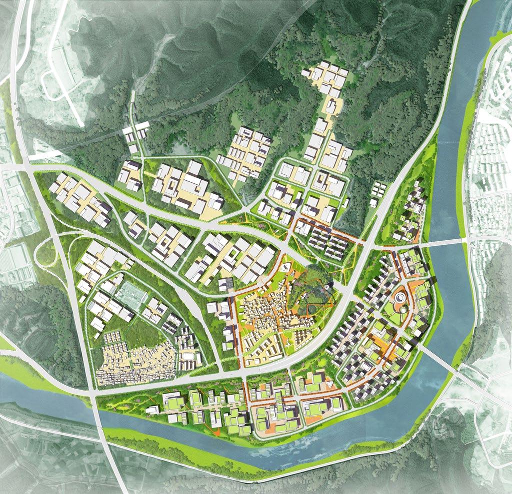 Upgrade local villages. Build a high-tech corridor from central hill to river as the core.