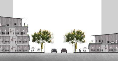 • Active pedestrian facade along primary street and rely on landscape to activate secondary development edges