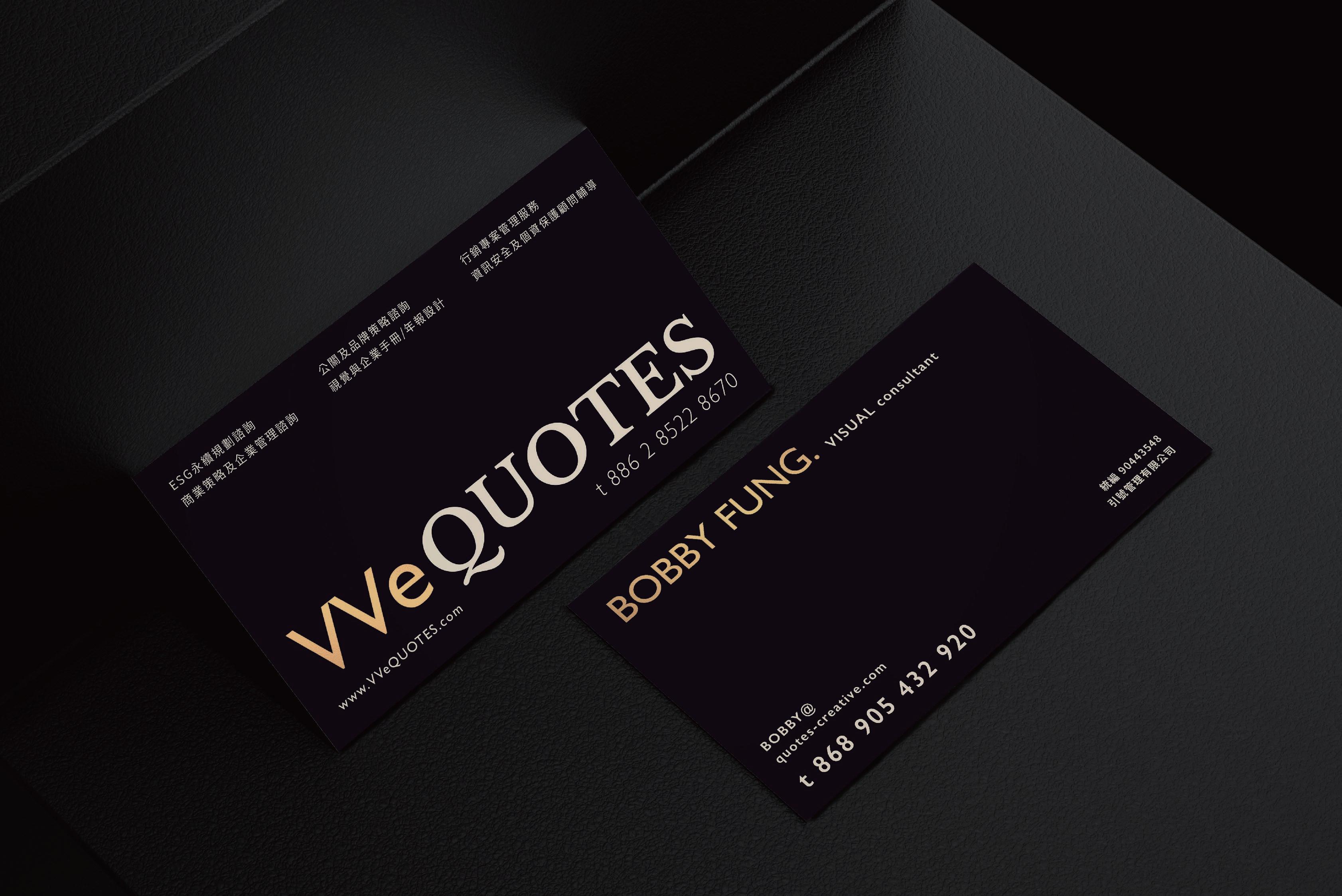 VVeQUOTES提供品牌策略、品牌視覺與行銷規劃等 一站式服務,致力於幫助客戶塑造卓越品牌。公司成 員來自台灣和香港,融合兩地文化。VVeQUOTES的 名稱開頭似乎是「We」(我們),實際上由兩個大 寫的V組成,象徵著我們與客戶之間的團結合作,共 同突破困境,創造更美好的品牌未來。