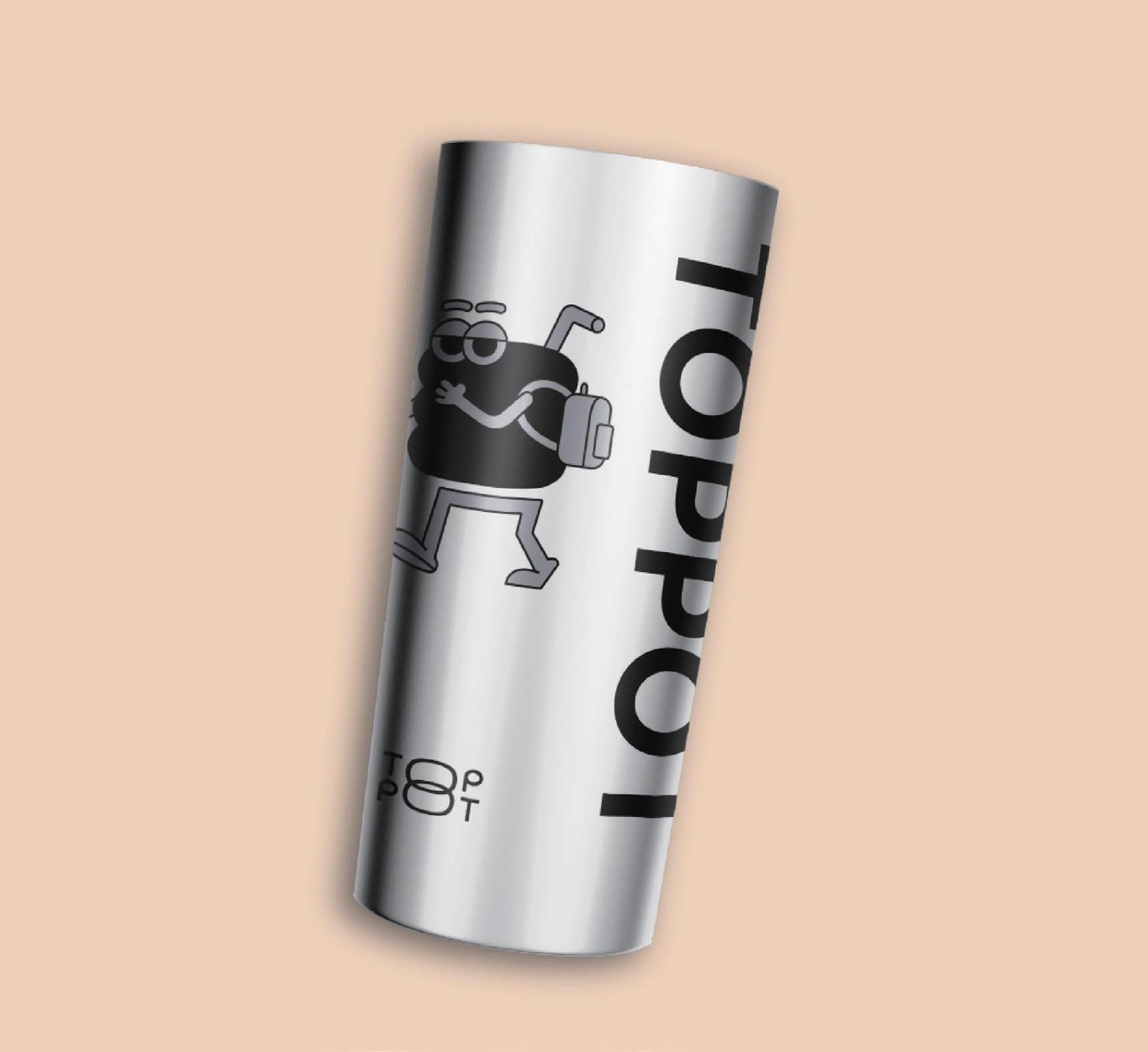 根吸管,巧妙地呈現為一個行走的飲料 杯。此外,吉祥物搭配半開的眼睛和滑 手機等動作,增添了一種厭世文青的趣 味。這樣的設計不僅形象鮮明,也能引 起年輕人的共鳴。