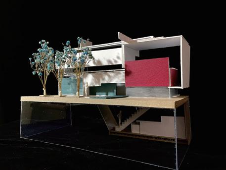 藉由私人空間的量體堆砌成如 山之建築搭配綠植增加互動。