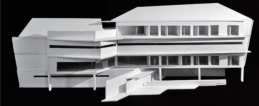 結構配合量體外,也配合當中機能規劃,利用樑 柱形塑出屬於綠化之中心,人以植栽為主軸圍繞 活動著。