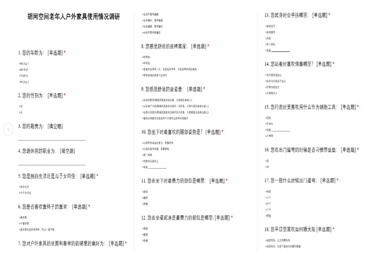 Based on the problems or potential needs of the elderly over 70 years old who live at home in Dashilan Hutong and often take outdoor activities, the Hutong public space should be renovated to adapt to aging. Make the environment more suitable for the entertainment and social interaction of young people, the elderly and children.
