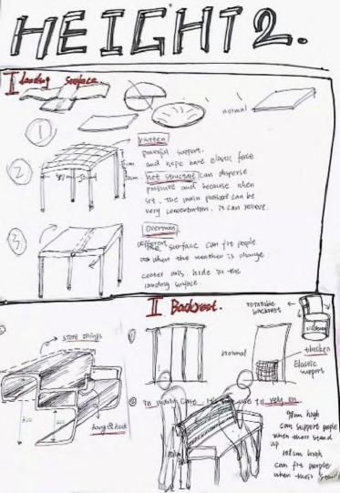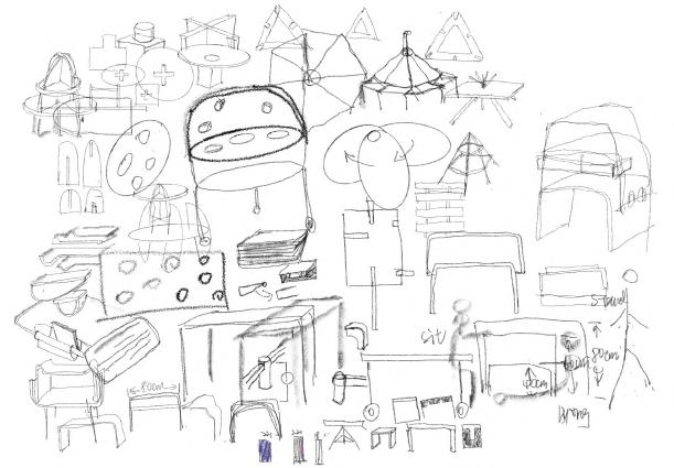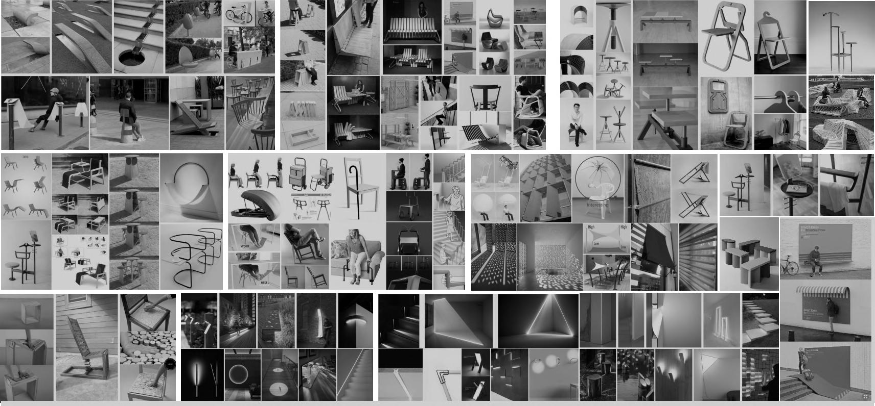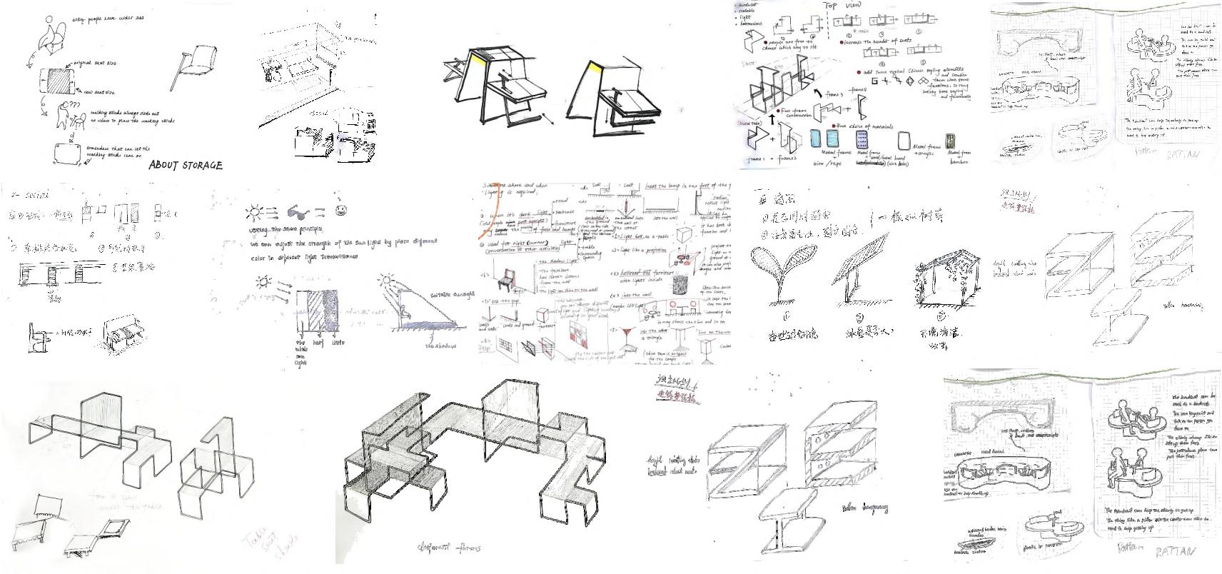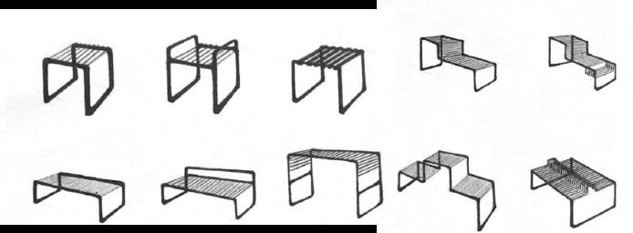 According to the above design points, we can find various kinds of targeted outdoor furniture and draw inspiration from materials, design elements and connection process. Further draw sketches to extend the modeling, and combine the environment to study the details and overall modular basic modules.