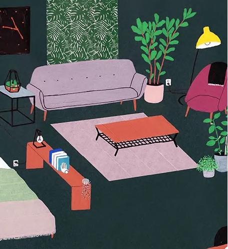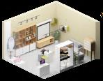 room for children,pets etc interaction/ table/free space position orientation framing guide light plants shelf/hook box hanger transparent trash bin