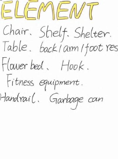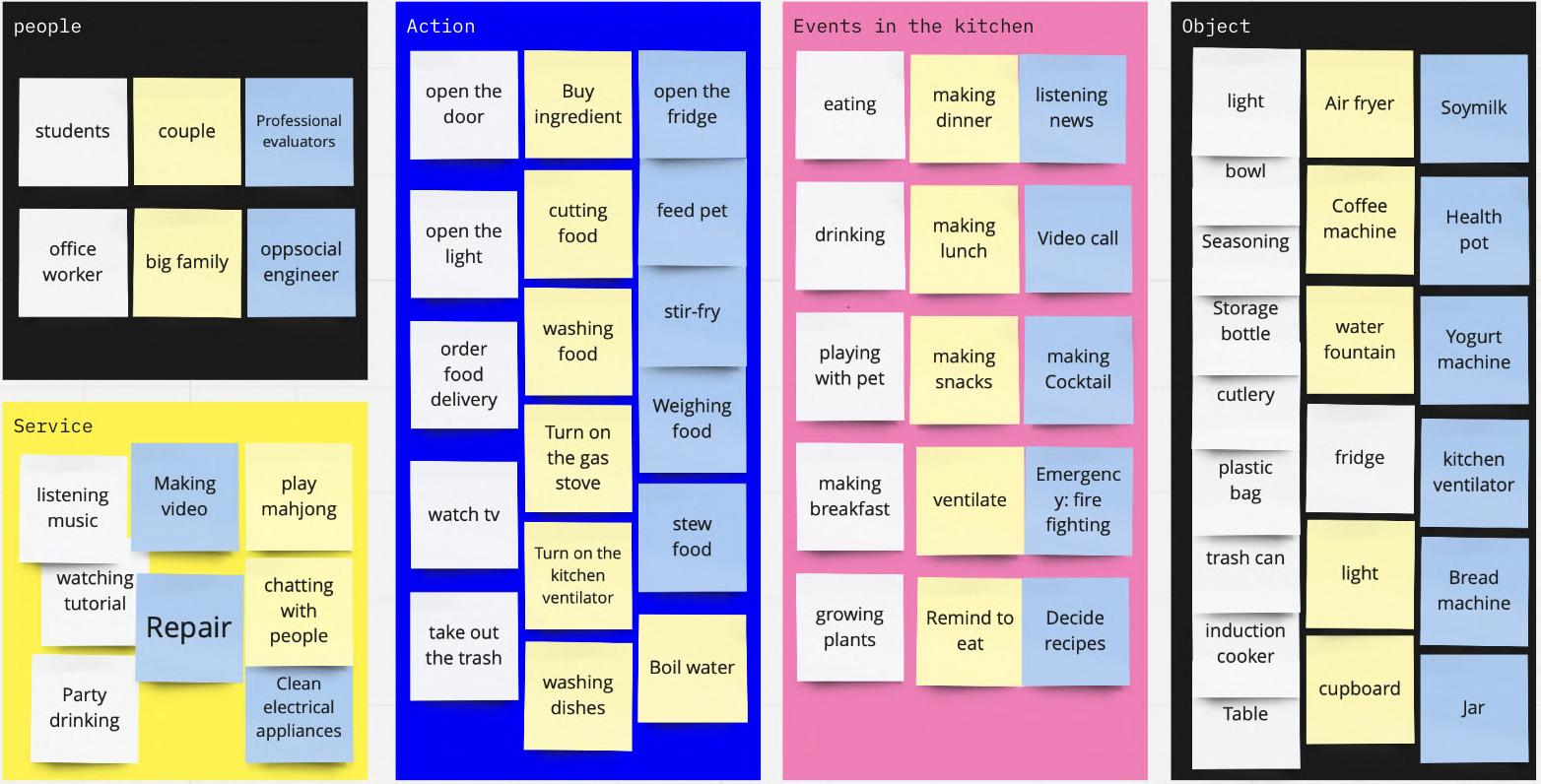 intensity Scale(action) Material Static Dynamic Get up: knees need strength support Sit down: with crutches Walking: mobility Aids Standing postu e: ely on Sitting prefe ence: massage the legs and lift the legs to p omote blood circulation Temperatu e Warm in winter and cool in summer) Easy to clean Harder Seat height, backrest angle and sitting surface radian Stability Prevent slipping Protection Older and older With children With pets Entertainment Surroundings Intelligent Aesthetic Temperature PM2.5 Humidity First aid alert Vegetation area Listen to radio Play cards Adapt