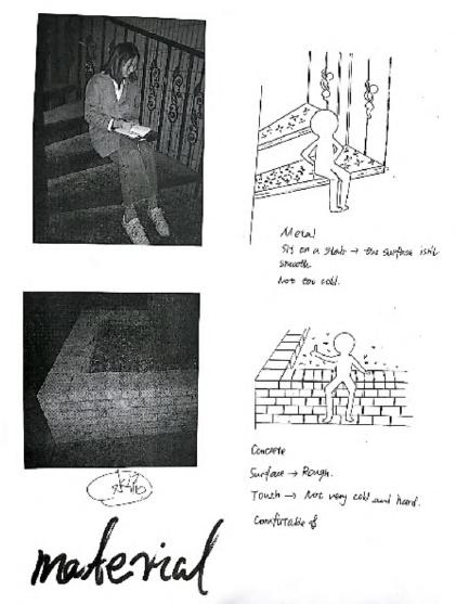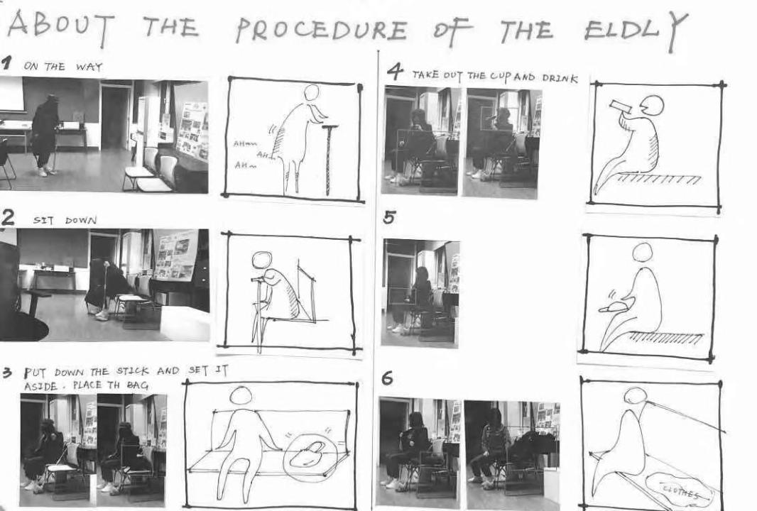 Based on the design points we summed up, we are divided into five groups to experiment by simulating an old people to look for the suitable angle, material and the best way to store objects.We use some tools to simulate the mobility inconvenience of the elderly, and at the same time, we look for different materials to feel the outdoor contact feeling, carry many items out, and search for different storage methods.