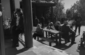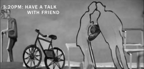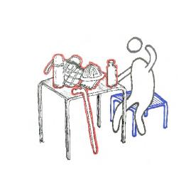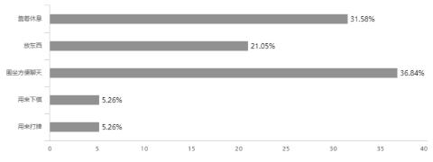 Old people define the main function of outside table as placing objects and chatting. The objects which old people going outside usually bring are stickers, handbags and water glass.