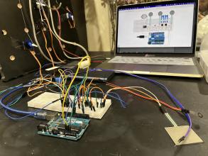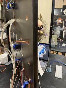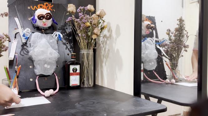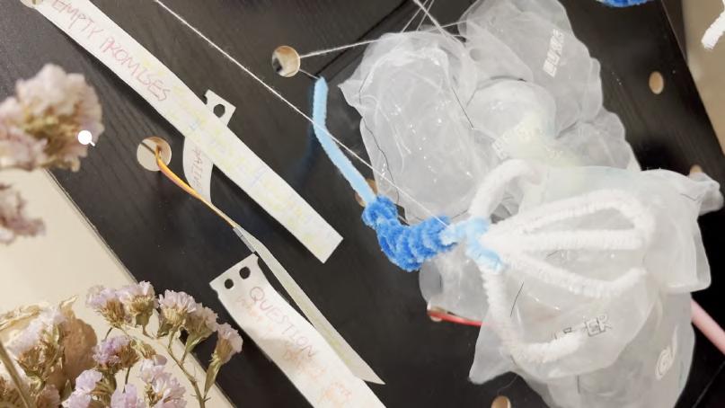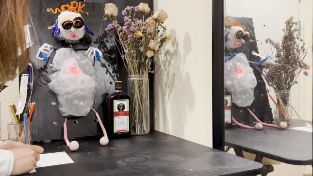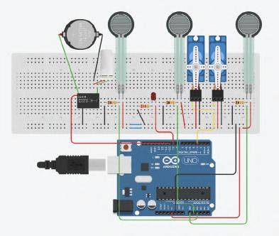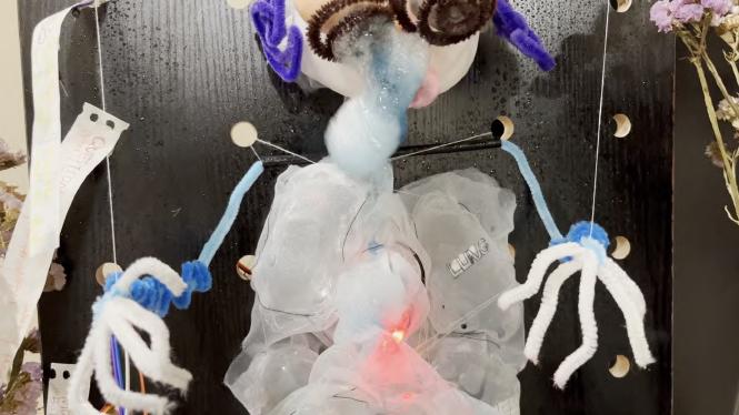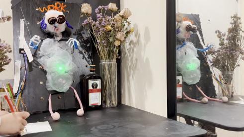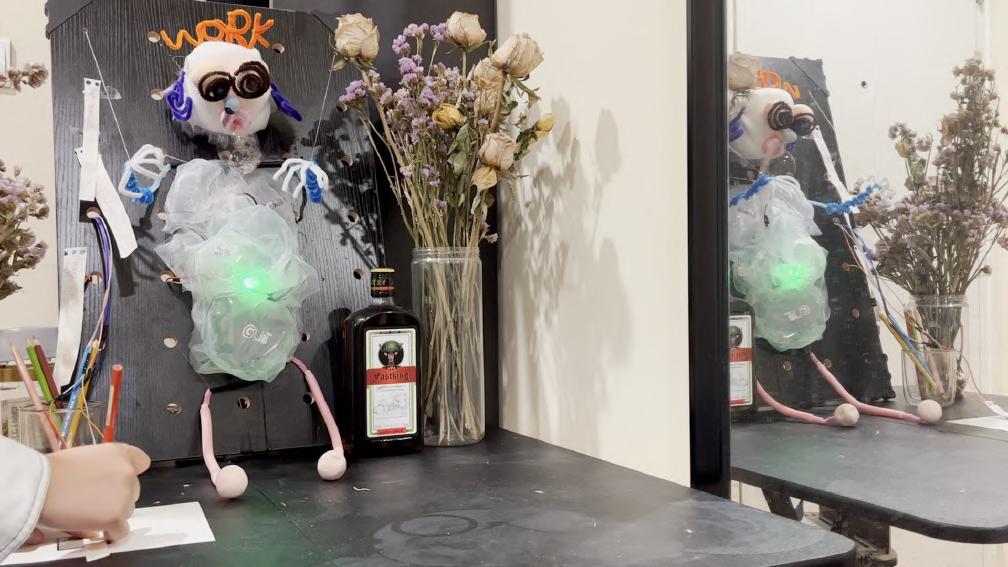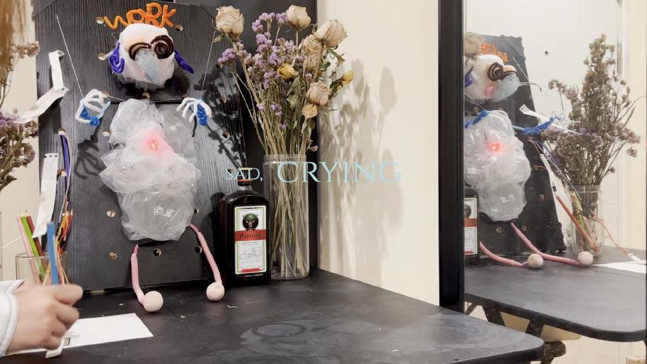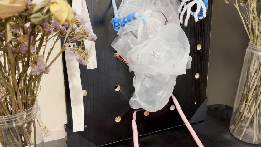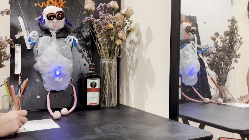 26 A B C D E Made with Tin ercad® Title: werful Snaget Date: 2022/10/19 16:25:27 Sheet: 1/1 10k R2 10k 10k R5 SIG GND SE IOREF RES 3.3V GND RX D2 D13 D3 D5 D6 D8 D9 D10 D12 SCL Arduino UNO U1_5V U1_GND SIG GND SE O1 D1 RED 0.22k COM1 COM2 T1 BR2016 T1+ T1U1_GND U1_GND U1_5V U1_5V U1_D3 U1_D3 U1_D10 U1_D10 U1_D9 U1_D9 INPUT Keyboard, so un d sensor pre ssure sensor an d m embrane pre ssure sensor can be u se d. 人机使用测试 SENSOR 舵机控制 Output te r m inal Martr ial Inspiratio n Circuit M o del THE PRESSURE SENSOR IS MORE STABLE FOAM LIGT Torsion bar Organza silk Heat-shrink Sheets Organza silk makeup cotton Breadboard 12v Battery Membrane pressure sensor DuPont line Relay LED steering engine Air pump Arduino UNO R3 Circuit diag ram connection Output terminal Input The model simulates a dying worker, who works callously in a beautiful environment. In the mirror, it is a leadership perspective that monitors employees' work.You can choose to write more PUA’s statements. Facial Features Sor ro w flo ws fro m their five sense s. Organ Bubble water&air outlet pipe&pigment Scoliosis Limb Wr iting inte ractio n T h e re a re d f fe re nt t yp e s o f P UA c u l t u re o n t h e n ote Display the current situation of the controlled migrant workers through lighting, body movement and foam.