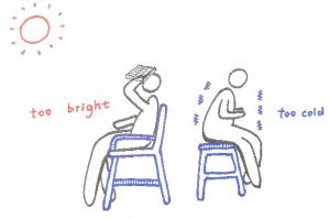 NOWHERE FOR OBJECTS EASY TO SLIDE EASY TO FORGET NOWHERE TO AVOID SUN UNSUITABLE HEIGHT NOWHERE FOR PETS