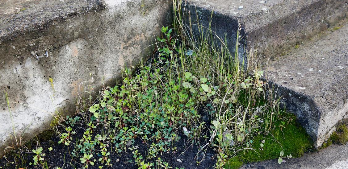 Figure 114: Author’s image.(2020) The concrete step in the unfinished polo stadium being taken over by wild vegetation.