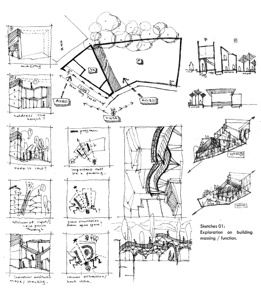 The design discourse began with a design of installation narrating the writings of Sybil. Deploying the deconstruction design pedagogy, the writings of Sybil are deconstructed into reconstructing an entire new notion of narrative into the memorial. Spatial organization were emphasized upon transitional spaces within the buildings yet potentially blend into the site context.