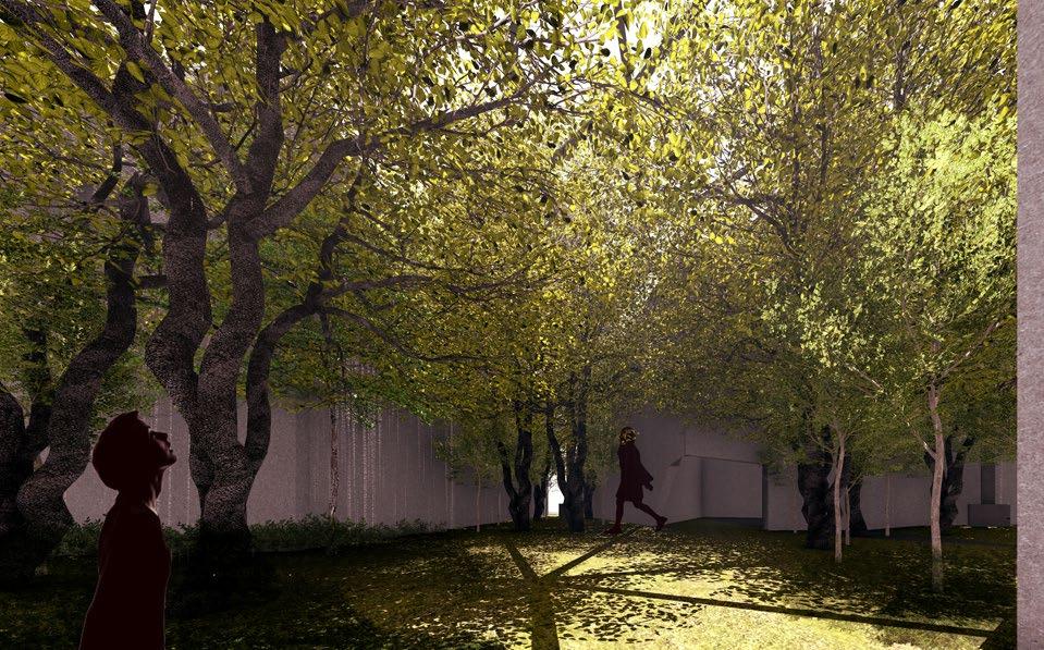 Approaching the memorial, visitors are greeted with a monumental entrance. Using concrete as the main material, this memorial aims to deliver the sense of primitive and unfinished.