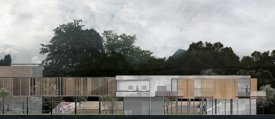 (Bottom Right) Gallery - Extended towards the lake, exhibitions can be held embracing the surrounding context, an inside out experience.