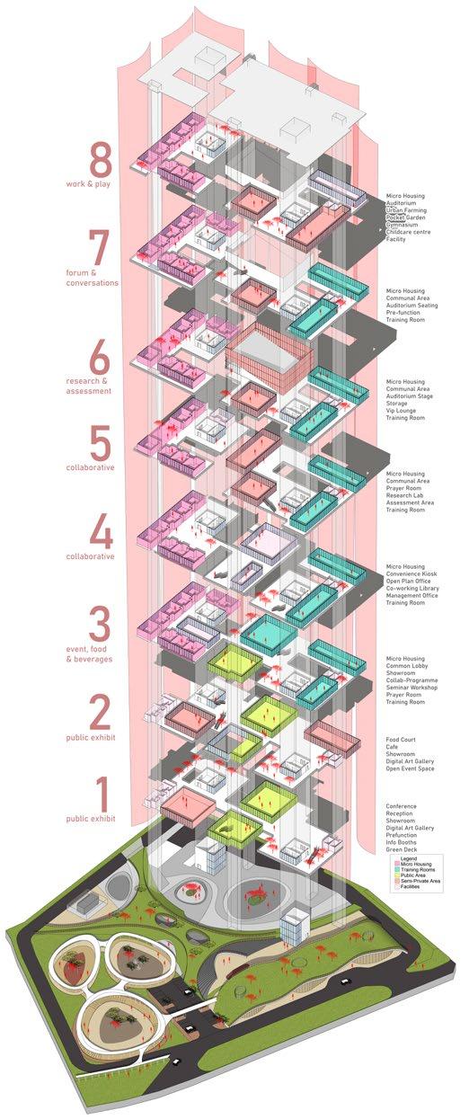 High-rise, known as building with more floors, often times are associated with negative perceptions such as ‘industrial capitalism’, ‘negative effects of privatization of space’, ‘lacked to provide more public city life’ and others. Can a high-rise give back to the surrounding community other than being merely for the insiders?