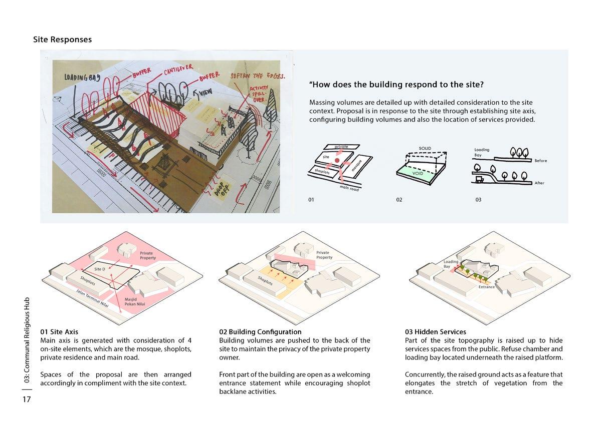 As a self-sustaining communal religious hub, spaces such as learning, mass gathering, incomegenerating and other unique facilities are designed in order to support the livelihood of the complex as a whole.