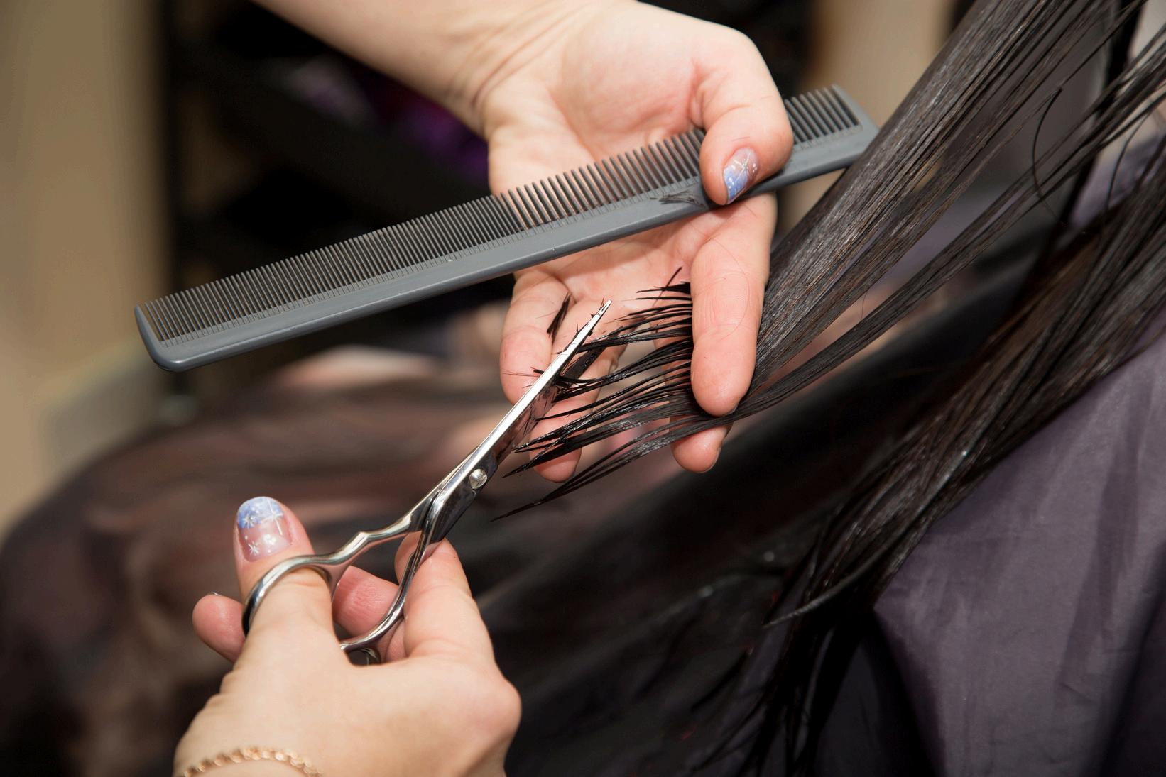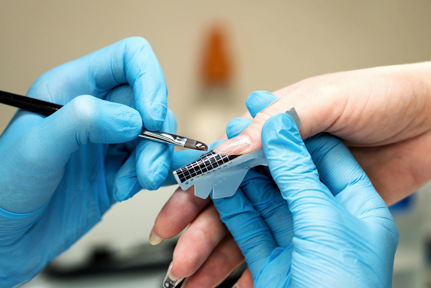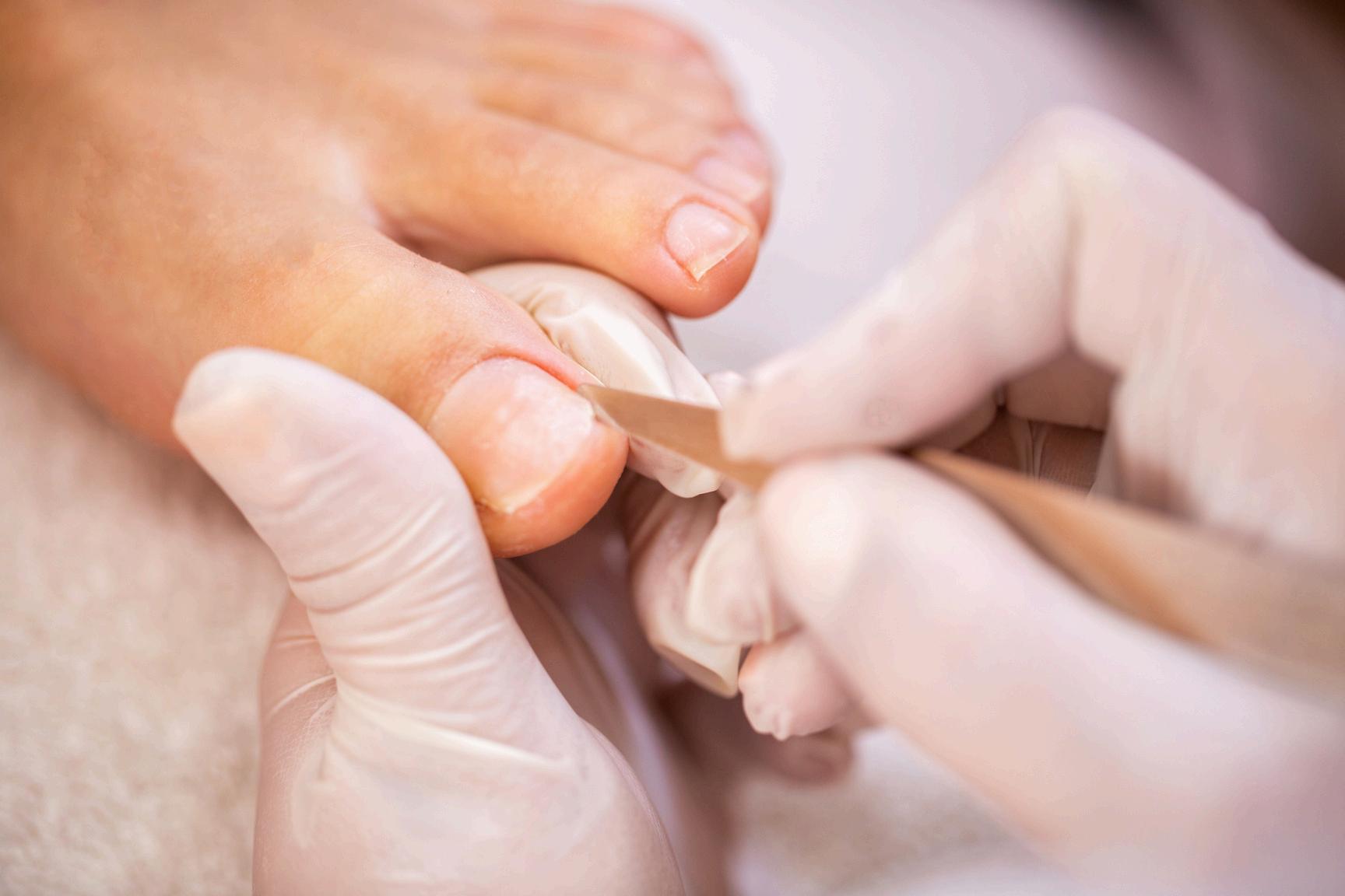 Removal of dead skin from hands and feet with warm towel treatment and nail color application