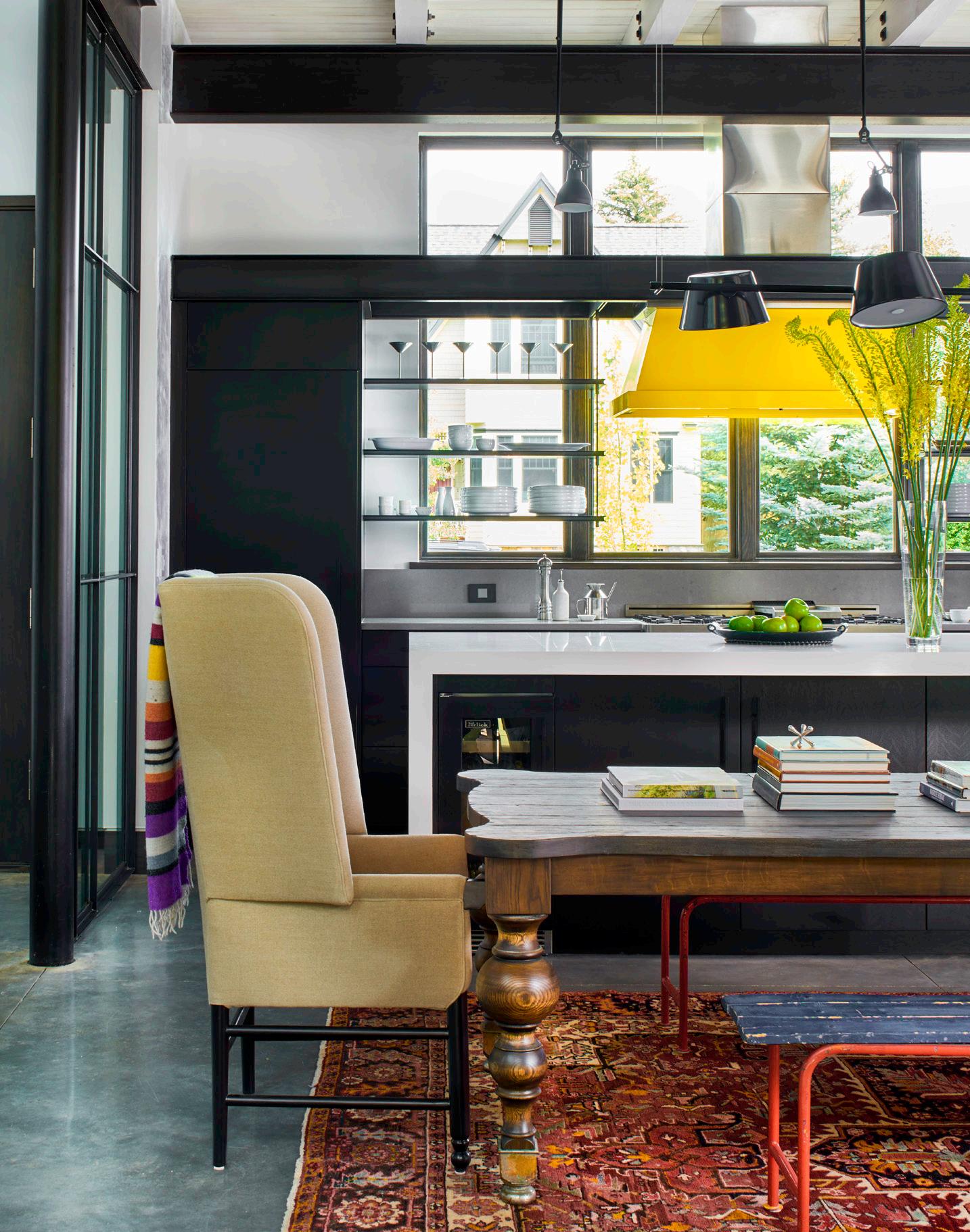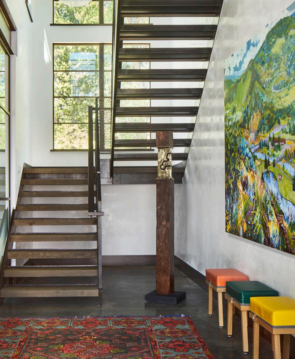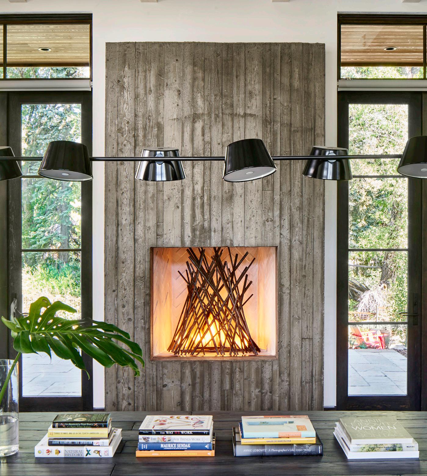 with a custom forged steel-twig insert keep the space feeling both expansive and cozy.