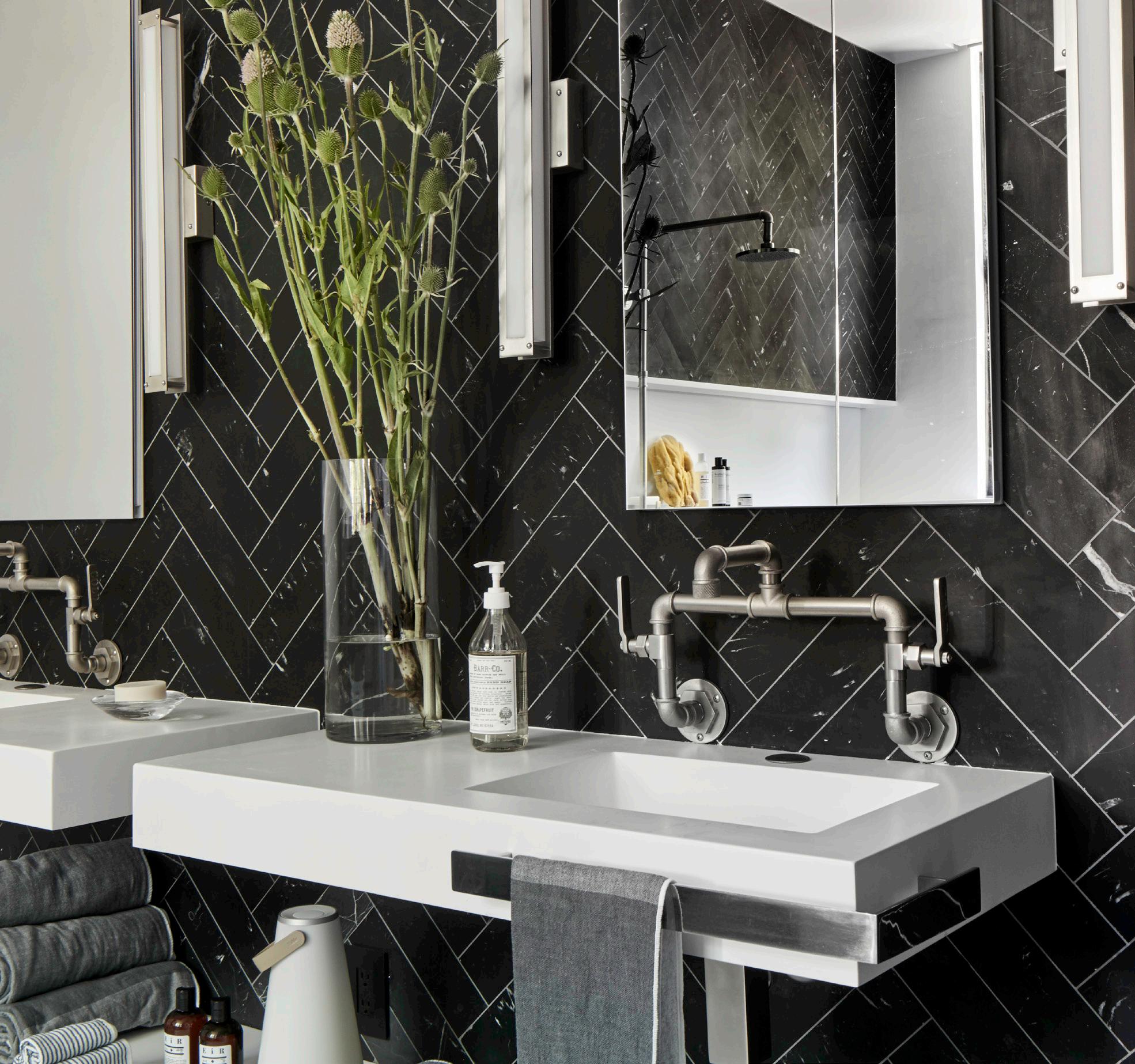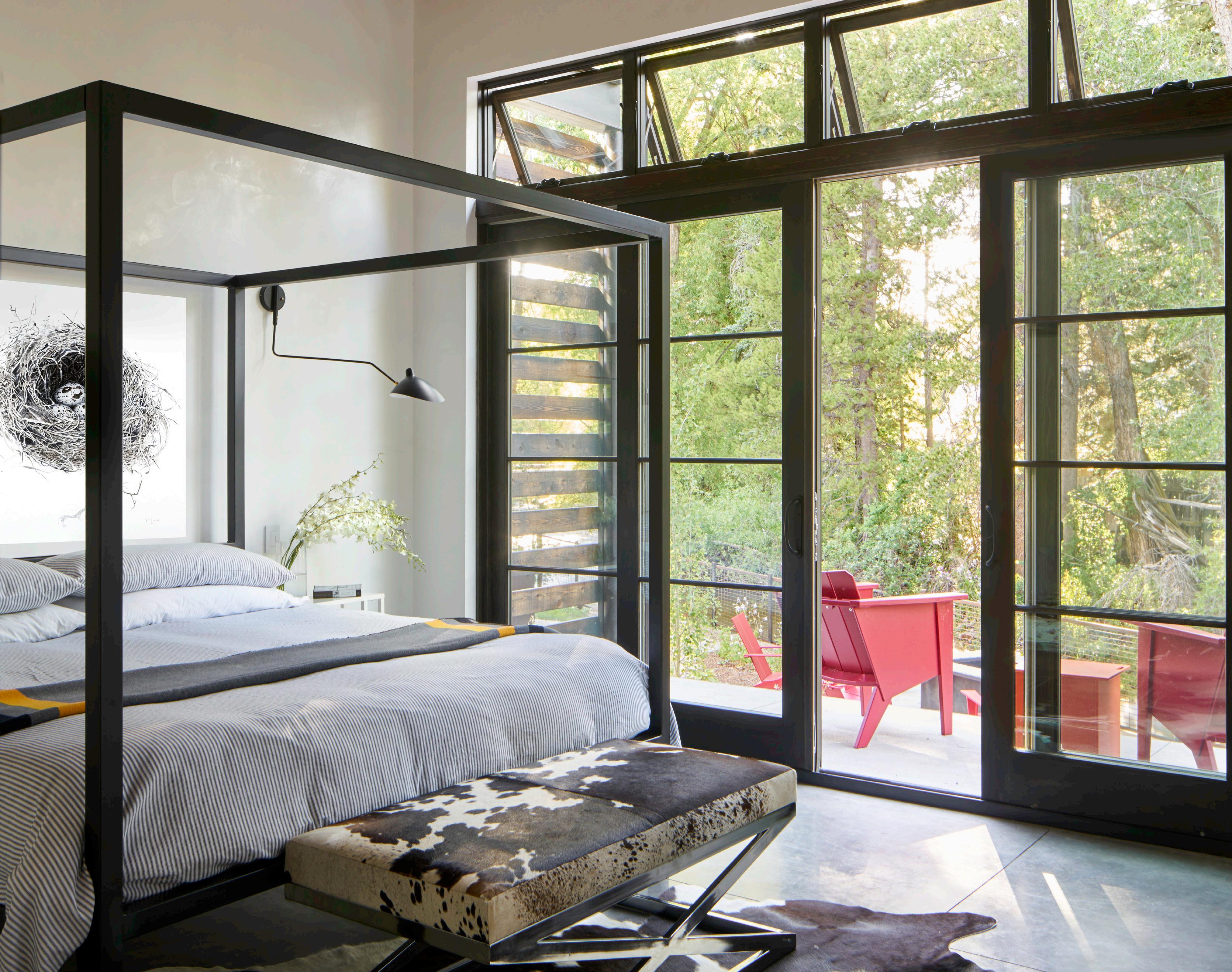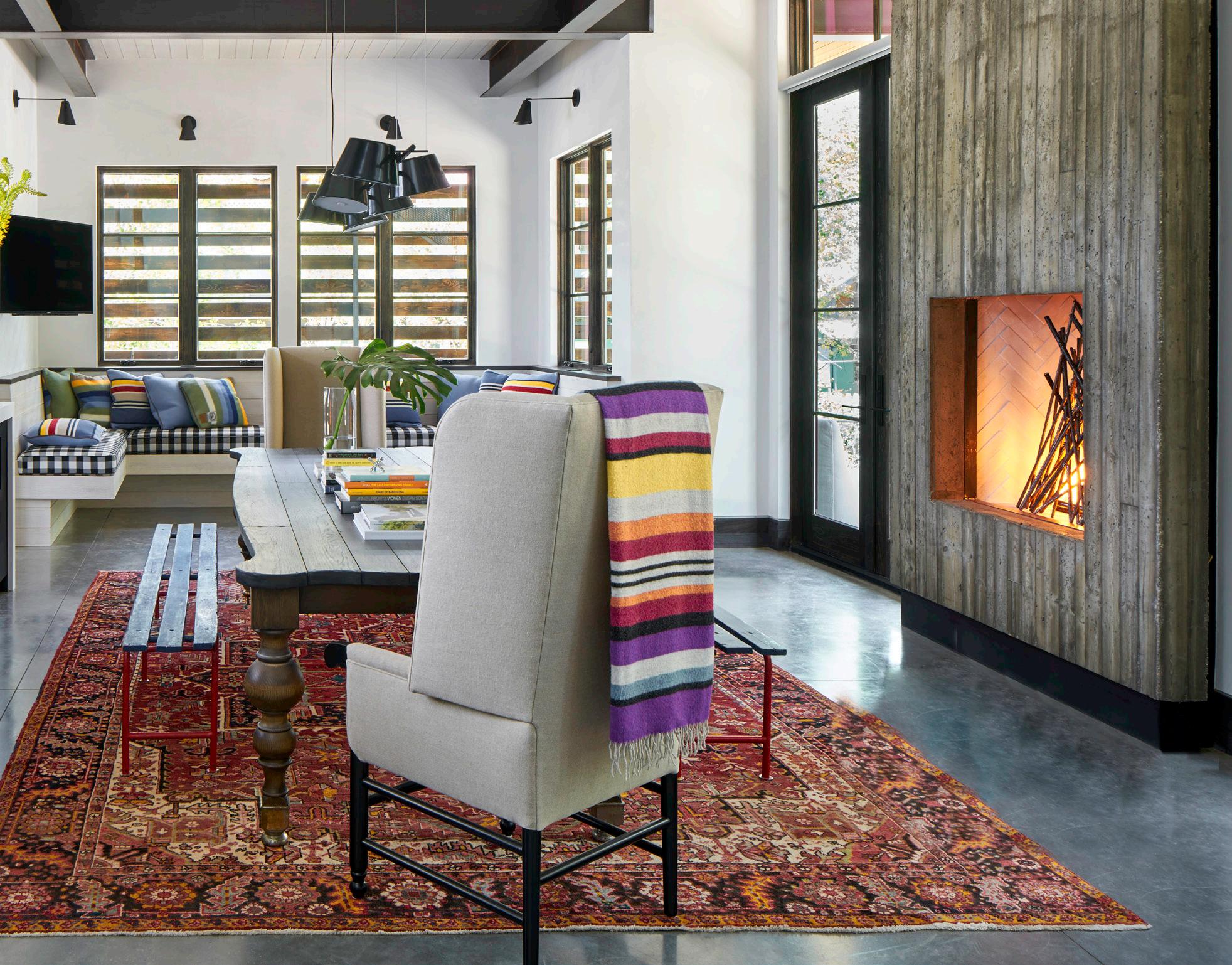 with a custom forged steel-twig insert keep the space feeling both expansive and cozy.