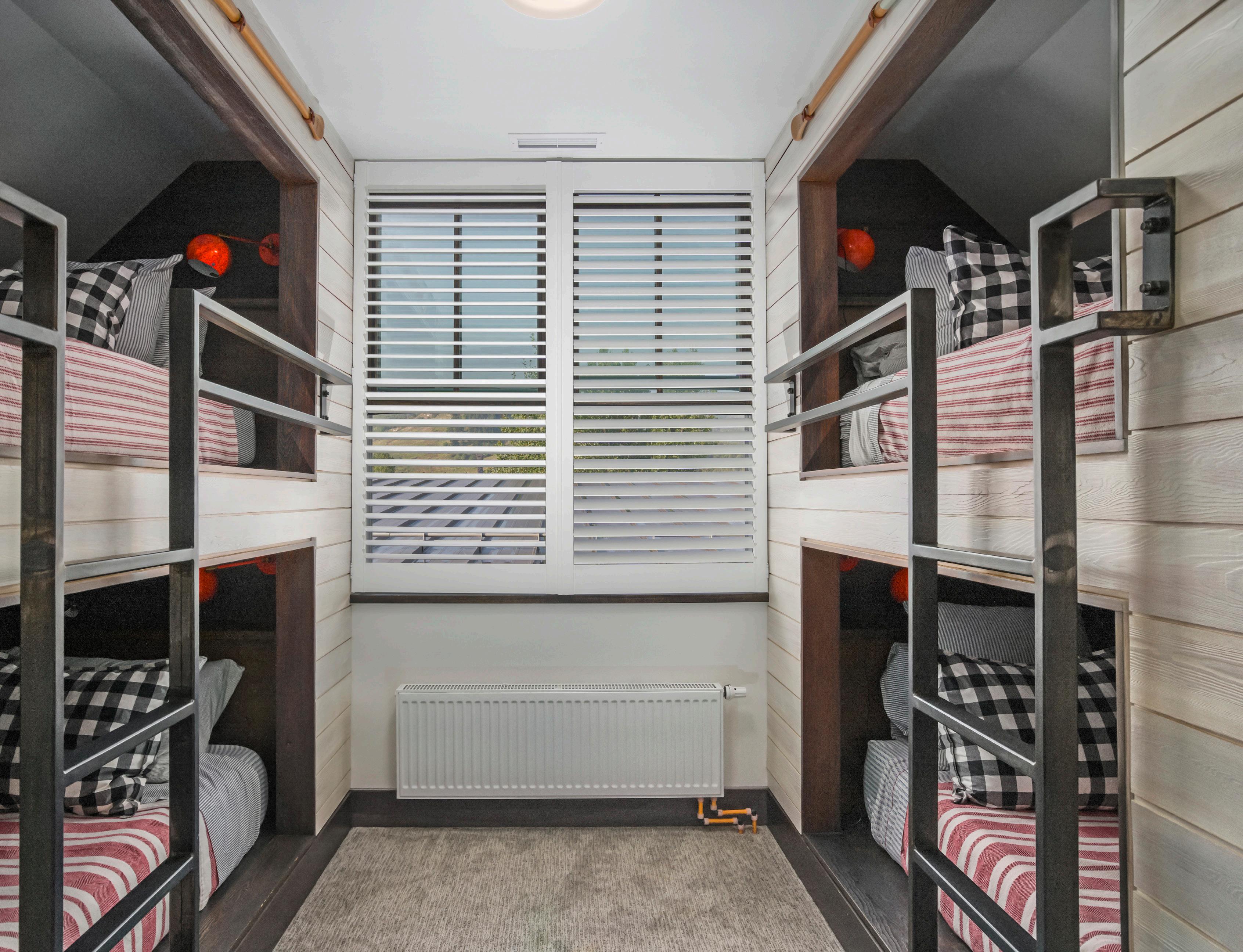 is a space saving sleeping arrangement allowing for an additional four guests to sleep comfortably in sleek built-in beds with individual bunk lamps and charging ports.