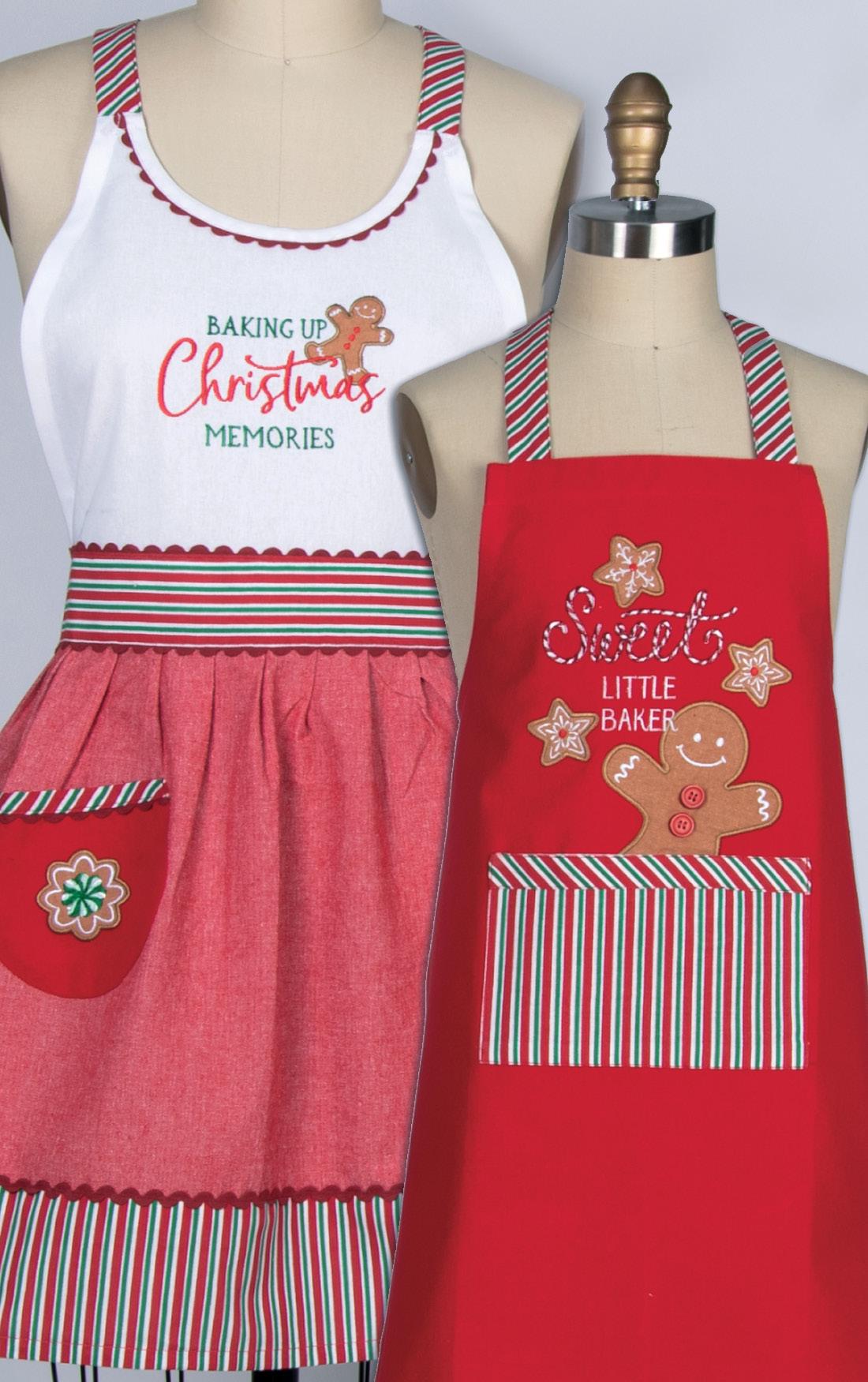 5.5 in x 7.5 in grabber mitt • 6.5 in x 8 in 2PK Swedish Fun Cloths • 26 in x 32 in chef apron with pocket 15 in x 20 in drying mat • 18 in x 28 in embr. tea towel