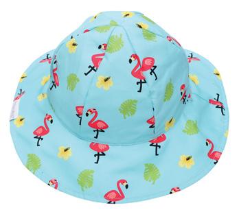 The wide brim, lined with a fresh, fun print, provides full coverage for sun-soaked days while an adjustable chin strap ensures the hat doesn't fly away with the wind.