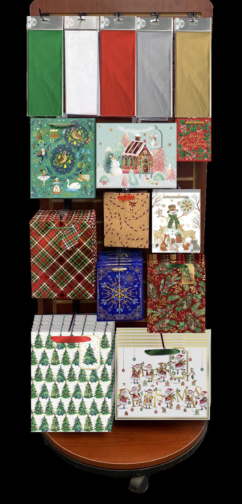 Merchandisers & Pre-Packs XPPKRA Christmas Pre-Pack Assortment: 2 Large Totes 6 ea 3 Medium Totes 6 ea 2 Small Totes 6 ea 2 Tiny Totes 6 ea 3 Tissues 18 ea Free Display Appox. $250 XPPKRB Christmas Pre-Pack Assortment: 2 Large Totes 6 ea 3 Medium Totes 6 ea 2 Small Totes 6 ea 2 Tiny Totes 6 ea 3 Tissues 18 ea Free Display Appox. $250 Displays can be customized to your specifications. 130 Merchandisers Christmas Pre-PackS 22" w x 47" h x 18" d PPK