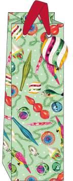 BOTTLE BAG green ribbon handles, gift tag