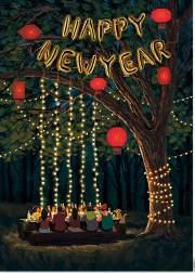 Beautifully crafted holiday cards with embossing and foil accents that enhance the whimsically stylized art.