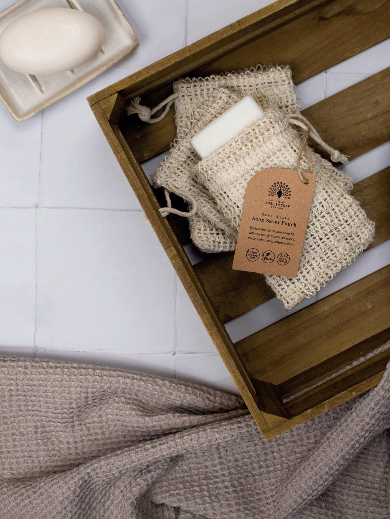 Prolong your soap’s life with this cotton and linen shower accessory. This product offers a sustainable solution, collating leftover soap pieces for zero waste while exfoliating the body at the same time.