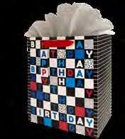 Checkerboard medium square item : 27-189212 9.75 in x 9.75 in x 4 in $16.50 pack of 6 | $2.75 each printed on white kraft, grosgrain ribbon handle, acrylic tag new
