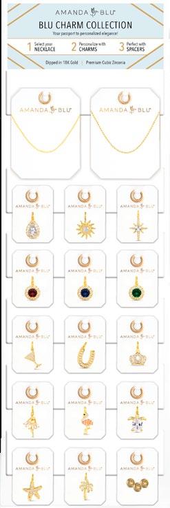 Introducing the Blu Charm Collection: Your customer’s passport to personalized elegance! Crafted from premium materials, the Amanda Blu necklaces and charms offer durability and versatility. The collection includes adjustable necklace styles and optional spacers to perfect the look. Each charm becoming a building block, allowing your customer to tell their story over time.