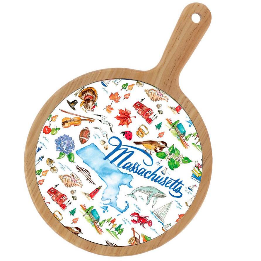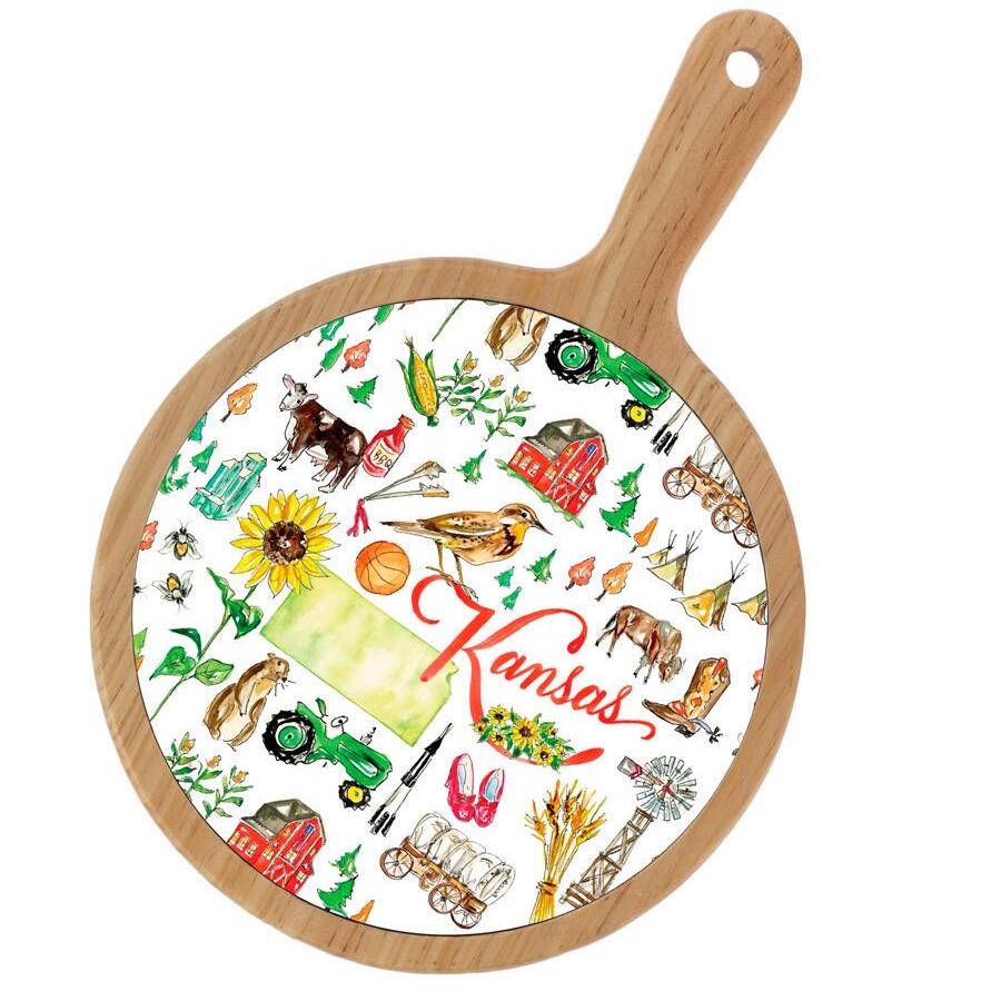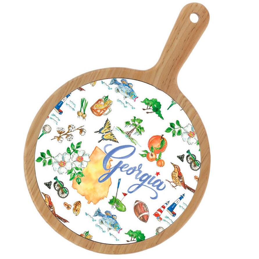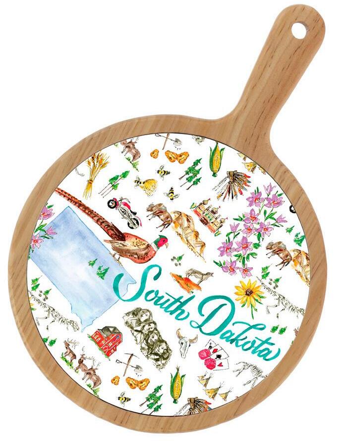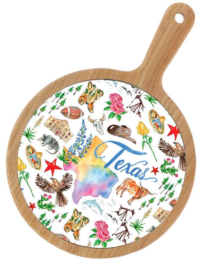 acacia wood & ceramic 12" L x 8.75" W x .25" H with handle sold in units of 4 / $7.50