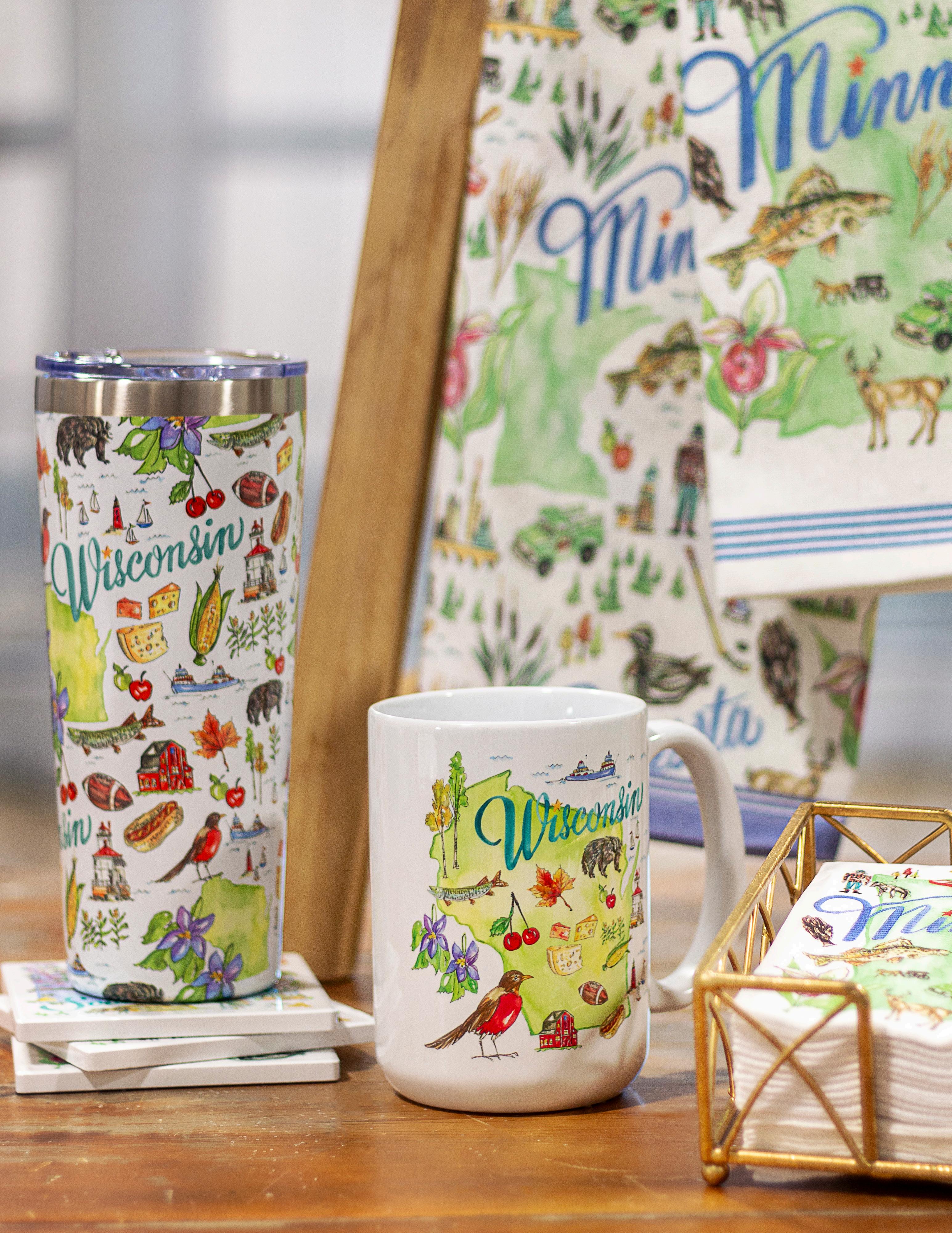 WI state collection tea towels cotton set of 2 28" L x 18" W sold in units of 4 / $7.50