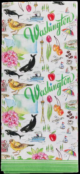 WA state collection tea towels cotton set of 2 28" L x 18" W sold in units of 4 / $7.50