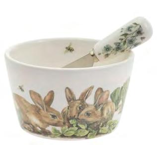 hydrangea bowl & spreader ceramic bowl: 4.75" Dia x 2.75" H, 14 oz spreader: 4.75" L sold in units of 4 / $10.00