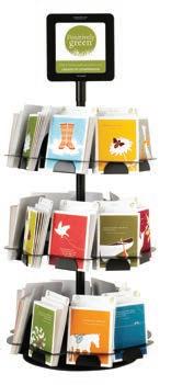 Features 576 cards with envelopes—12 each of 48 preselected designs—in an easy-to-assemble and attractive metal display. With only a 16.5" footprint, the floor display offers 6 spinning carousels and is powder coated in dark espresso to easily match any store style. Fixture comes free with package purchase.