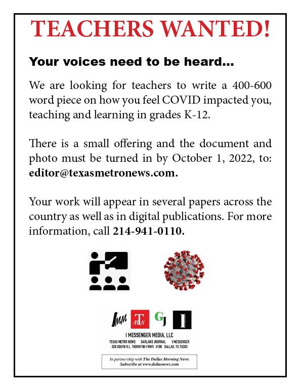 “As the leading bank for business, it is imperative that we raise expectations in all the communities where we live and serve,” said Comeri ca Bank Dallas Market Presi dent Amanda Mahaney. “For many years, we have provid ed retail banking services and made community in vestments in the South Dallas community. Now, Derric and his team will focus on finding access to capital solutions for underserved entrepreneurs and small businesses.”