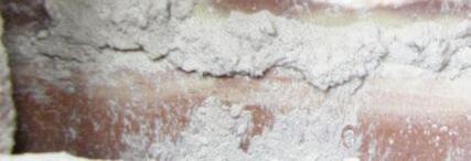 When rising damp affects a wall structure, salts contained within the ground water (‘Nitrate and chloride’ being the most common) are drawn into the wall and subsequently the plaster by capillar y action. In severe cases the plaster work can lose its key, along with visual evidence of salts, noted by the presence of staining and sur face mineral salting