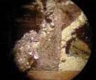 The mycelium of wet rot is normally darker in colour, and tread like.It remains flexible when dr y, unlike dr y rot mycelium which goes brittle.