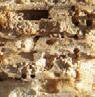 Tunnels in the wood: also known as 'galleries' which are often hidden