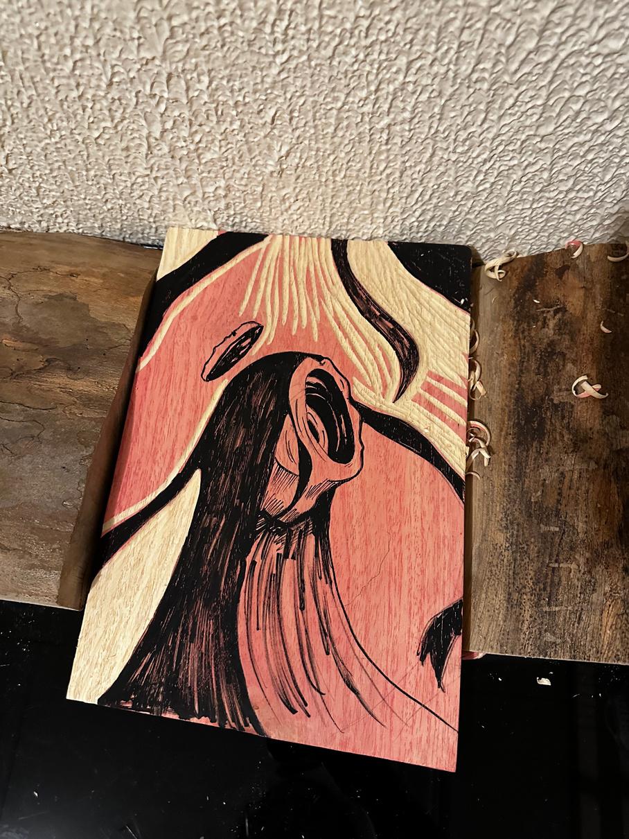 )Se escoge el tercer boceto por el hubo de la plasta negra y plasta, así como la composición, elementos xilograficos y relación con la temática.