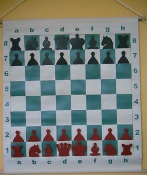Tablero de vinil tipo mural enrollable de 80cmx80cm, piezas en plástico tipo tarjetilla, con damas extras, las casillas tienen tipo bolsita transparente para colocar las piezas.