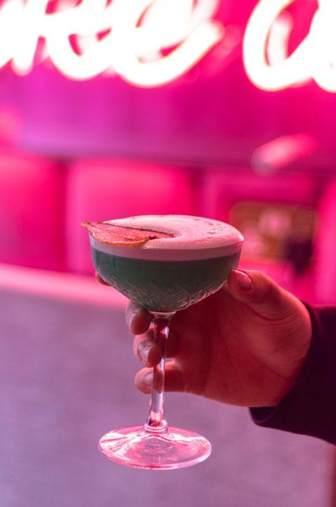 If you’re feeling pretty in the sun - this is the cocktail for you! Lanique Rose liqueur, Bacardi Raspberry, prickly pear liqueur, lemon, geranium syrup and cranberry juice finished with candy floss and rose petals.