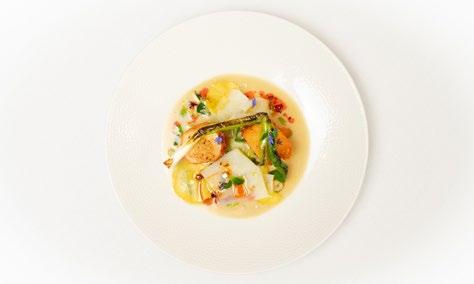 This vibrant dish reimagines a classic favourite, carefully curated by renowned Chester institution, Chef's Table. Boned, rolled, and stuffed chicken thigh, laab namtok, coconut and tamarind broth, kohlrabi. This dish is one you must try for yourself.