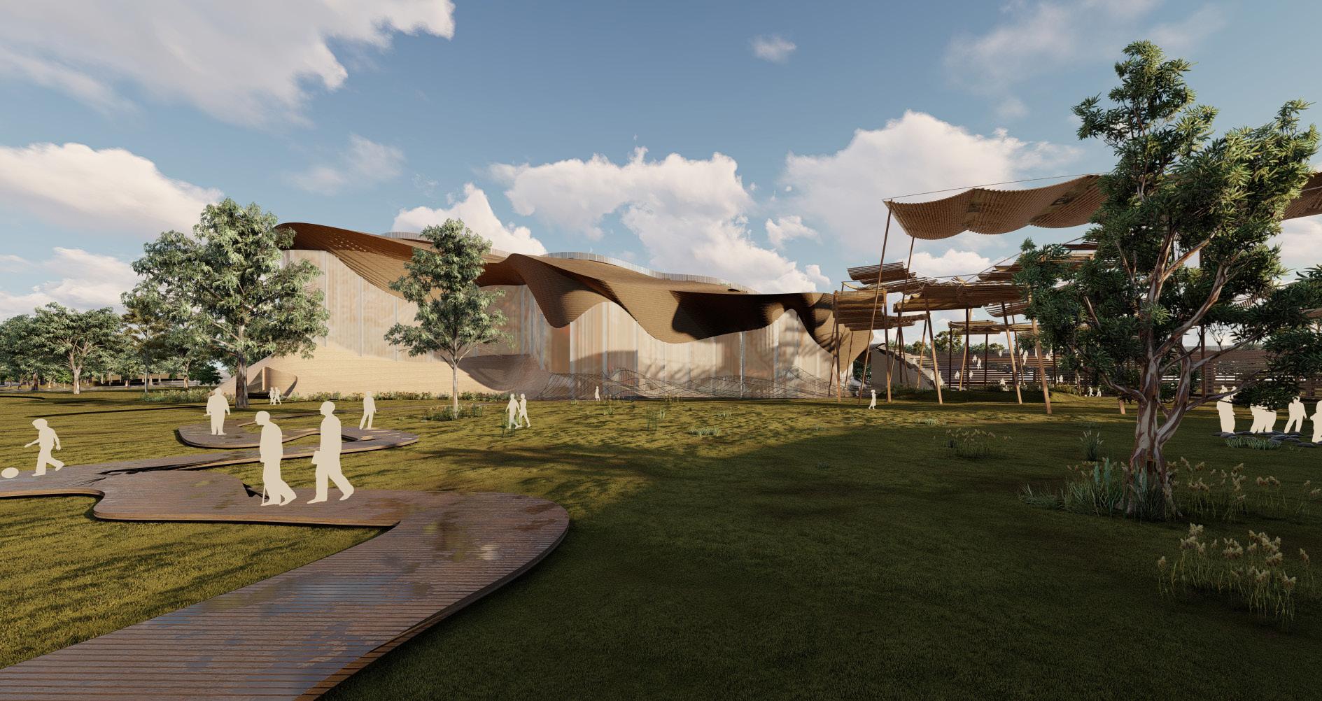 By referring local traditional gathering places such as Mount Noorat, The Hopkins River, and Lake Bolac, our proposal ties together the rural surrounds, and weaves a tapestry of past and present First Nations people who engaged with the context, and the significant notions of country that arise from this.