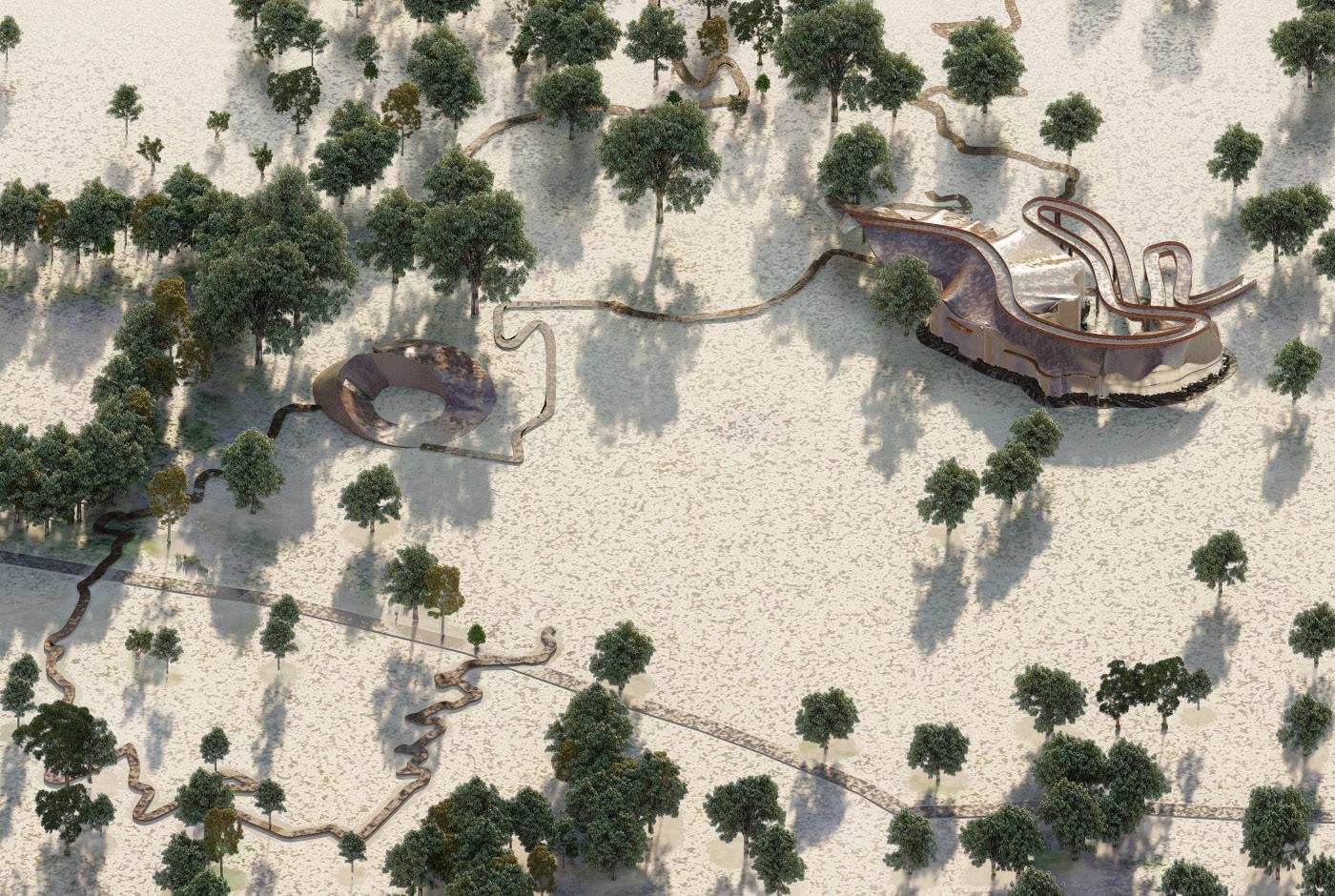 Our proposal creates immediate opportunities for community enrichment, with a new designated campsite and amenities building, Uncle Lenny’s open door policy is honoured, and visitors are encouraged to live on, and learn from country. Our design progresses into a art, culture and education precinct, and then continues to grow and spread across the site, increasing enterprise and tourism opportunities as it does.